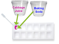 - In a small cup or ice cube tray, place a few drops of the cabbage juice and a few drops of the liquid you are testing.